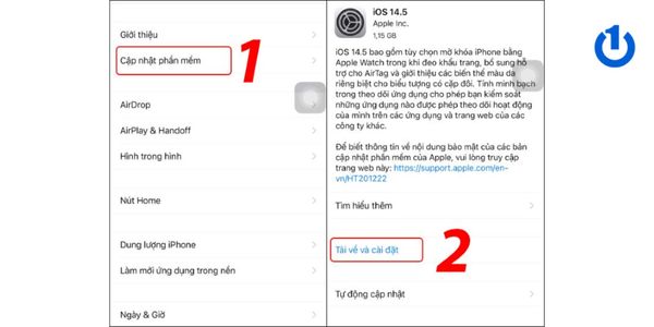 Bước 2: Chọn vào mục “Cập nhật phần mềm” → Lúc này sẽ xuất hiện phiên bản iOS cần cập nhật và chọn vào “Tải về và Cài đặt”