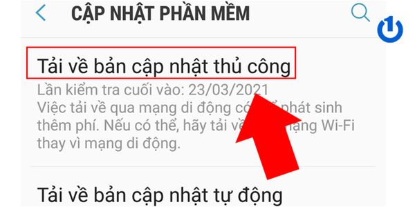 Bước 2: Chọn vào “Tải về bản cập nhật thủ công”. Đợi một lúc sau khi cập nhật hoàn tất là có thể khắc phục nhé!