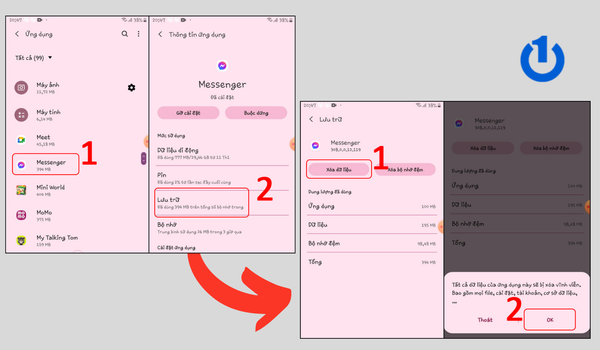 Xóa dữ liệu ứng dụng Messenger