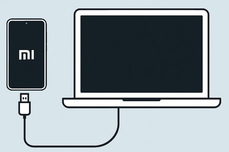 Cách thực hiện như sau: Chuẩn bị cáp USB => Tiến hành kết nối điện thoại Xiaomi với máy tính hoặc Laptop => Chờ khoảng 10-20 giây => Khi điện thoại nhận nguồn và tín hiệu, máy sẽ tự động khởi động lại và hiển thị logo Xiaomi.