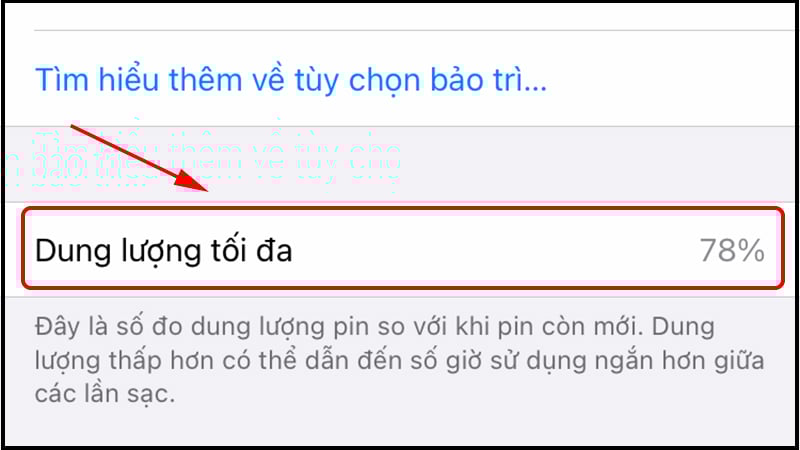 Sau khi kiểm tra, bạn có thể thấy dung lượng tối đa của pin iPhone của bạn. Tuy nhiên theo thời gian, dung lượng pin sẽ giảm dần do quá trình tự nhiên của việc sử dụng và sạc pin.