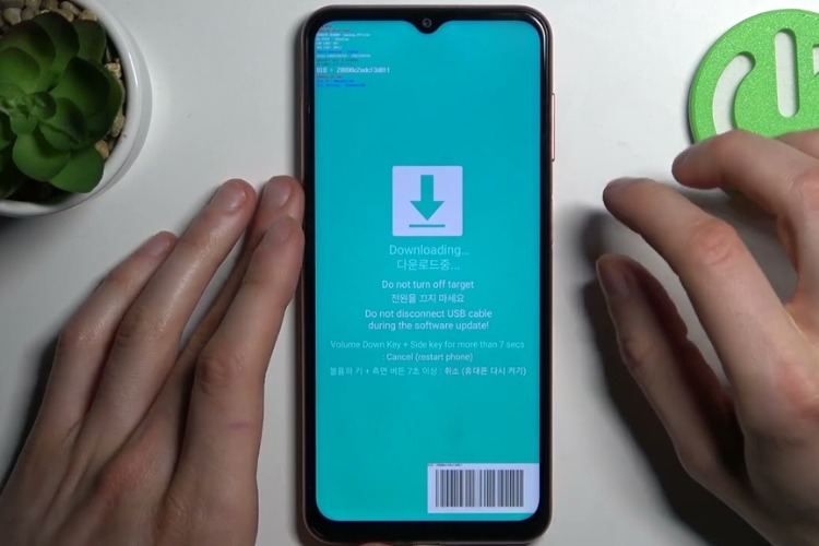 Bước 4: Nhấn giữ nút "Tăng âm lượng" kết nối điện thoại với máy tính bằng cáp USB. Khi này, điện thoại sẽ chuyển về chế độ Download Mode.