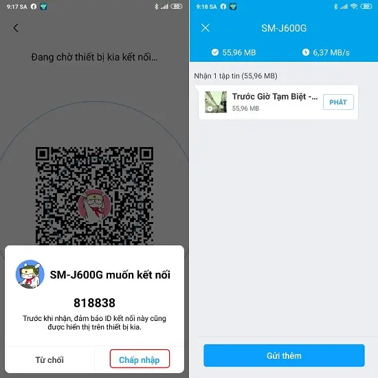 Bước 4: Trên điện thoại Samsung, chọn "Tôi là người gửi" và trên điện thoại Xiaomi, chọn "Tôi là người nhận".