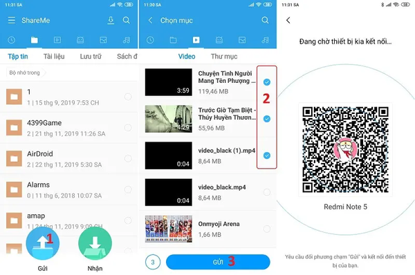 Bước 5: Đặt hai điện thoại Samsung và Xiaomi gần nhau để dễ dàng kết nối. Sau đó, bạn có thể chọn các dữ liệu cần chuyển và nhấn nút Gửi để bắt đầu quá trình chuyển dữ liệu từ Samsung sang Xiaomi.