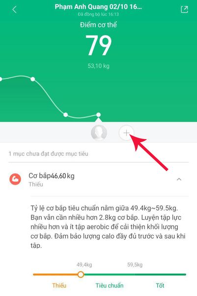 - Để thêm hồ sơ thành viên mới, trên màn hình hiển thị kết quả, nhấn vào biểu tượng "+" và cập nhật thông tin yêu cầu như tên, giới tính, ngày sinh, chiều cao và cân nặng.