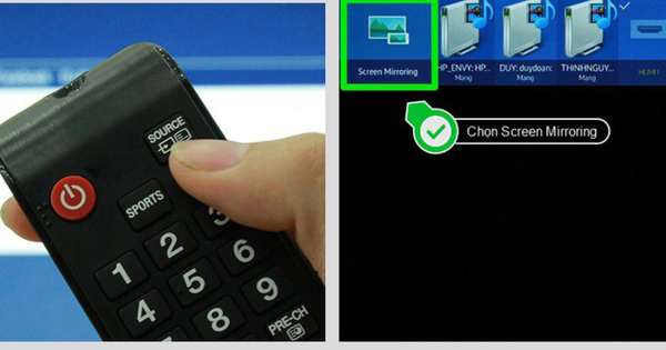 Chọn nút nguồn trên điều khiển, sau đó trên màn hình tivi bấm chọn chọn Screen Mirroring
