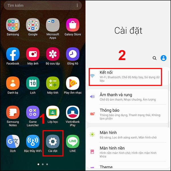 Bước 1: Truy cập ứng dụng "Cài đặt" -> "Kết nối".