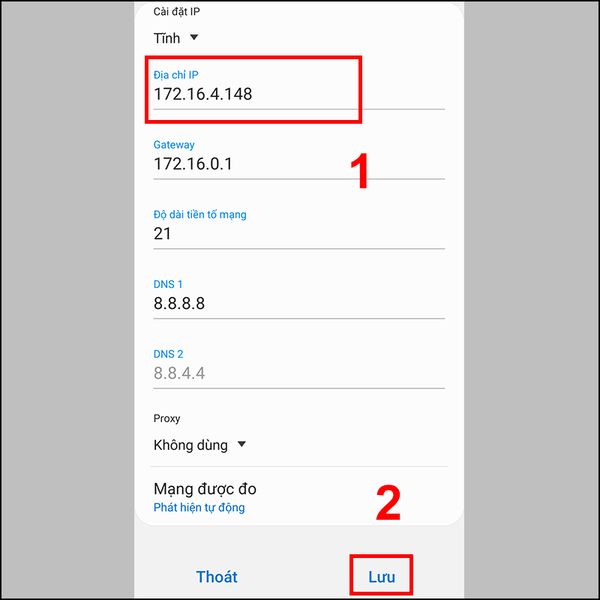 Bước 4: Đặt lại địa chỉ IP -> chọn "Lưu".