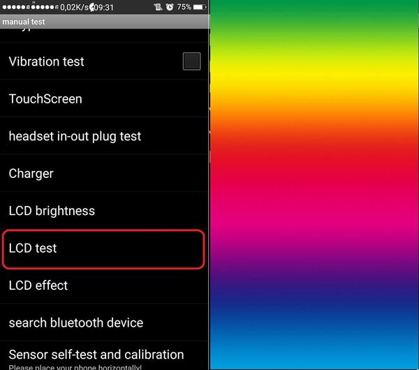 Chọn LCD Test để kiểm tra chất lượng, màu sắc của Oppo