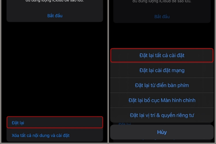 Đặt lại tất cả cài đặt: Lựa chọn này sẽ xóa toàn bộ các thiết lập cài đặt mà không làm mất dữ liệu cá nhân trên máy.