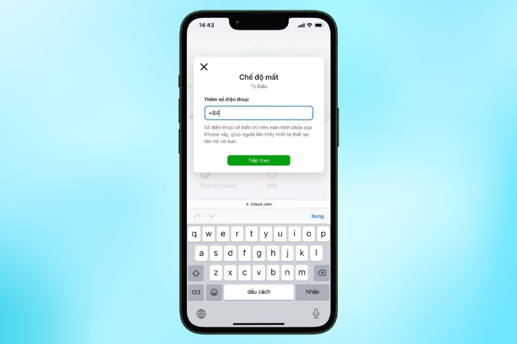 Bước 2: Nhập một số điện thoại khác mà bạn đang sử dụng khác với số điện thoại trên thiết bị bị mất để người nhặt được có thể liên hệ với bạn. Sau đó, nhấn “Tiếp theo”.