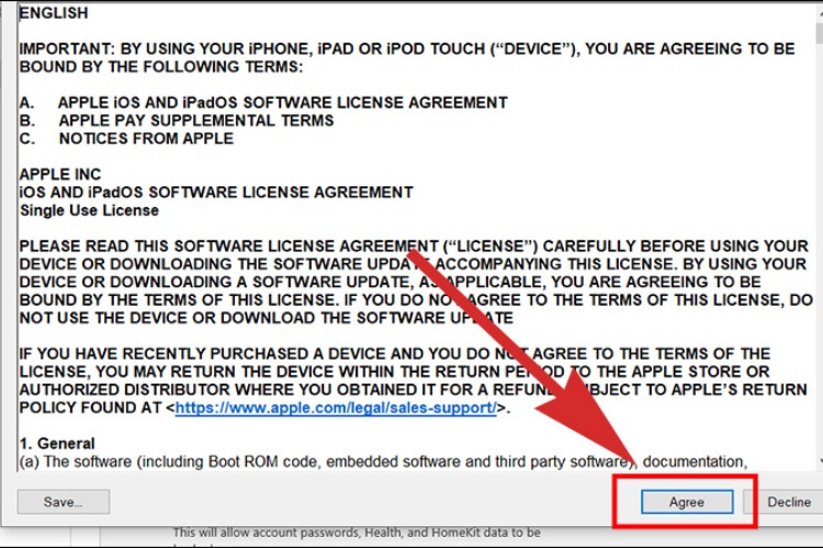 Bước 5: Nhấn “Agree” sau đó chờ quá trình khôi phục hoàn tất.