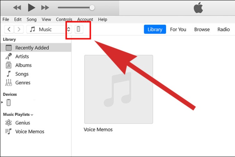 Bước 2: Kết nối iPhone X với máy tính bằng dây cáp. Sau đó nhấn vào biểu tượng điện thoại trên iTunes.
