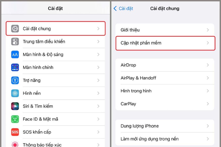 Vào "Cài đặt chung" nhấn chọn "Cập nhật phần mềm"