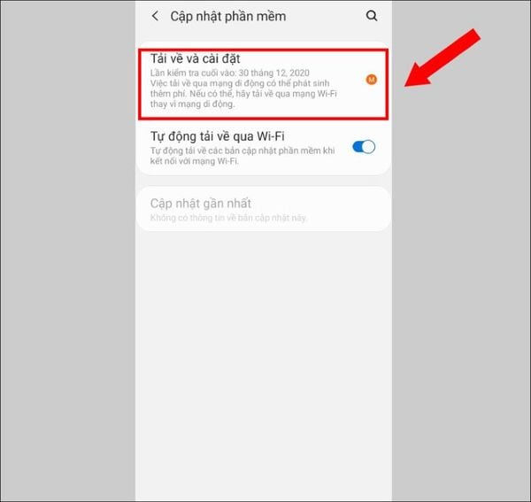 Bước 2: Điện thoại sẽ hiện ra mục có phần mềm mới cần cài đặt, bạn chỉ cần nhấn chọn “Tải về và cài đặt”. Đợi máy chạy xong hết chương trình là hoàn tất việc cài đặt.
