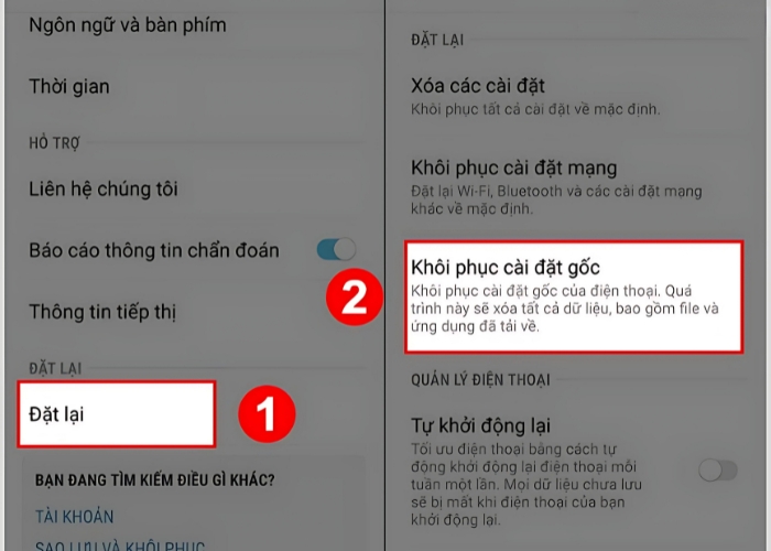 Khôi phục cài đặt gốc để reset lại toàn bộ máy