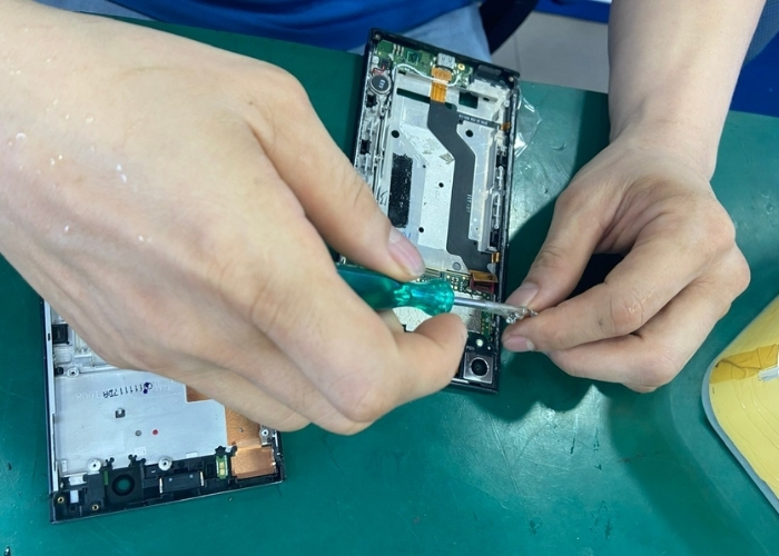 Bạn nên kiểm tra xem có dấu hiệu hư hỏng vật lý nào trên màn hình hay không. Nếu điện thoại đã từng bị rơi hoặc va đập có thể cáp kết nối bị lỏng hoặc các linh kiện bị hỏng.