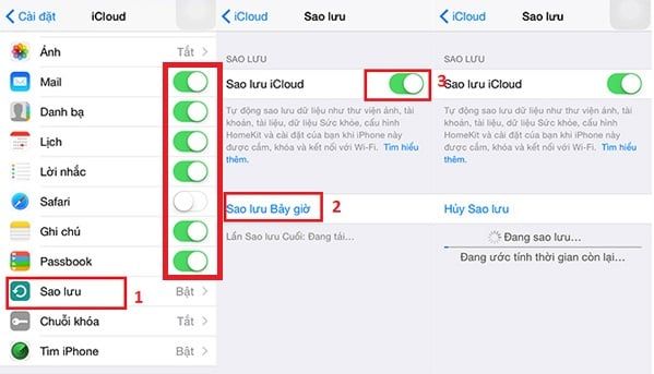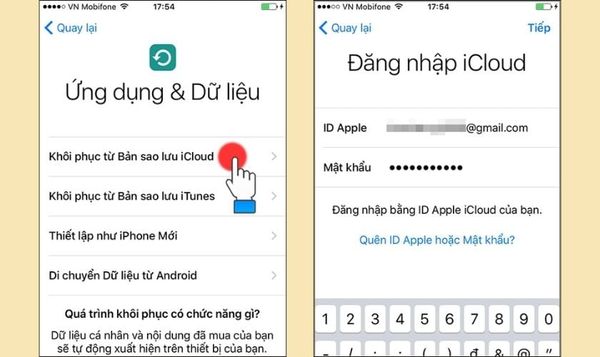 Khôi phục dữ liệu: Sử dụng bản sao lưu trên iCloud hoặc máy tính để khôi phục dữ liệu.