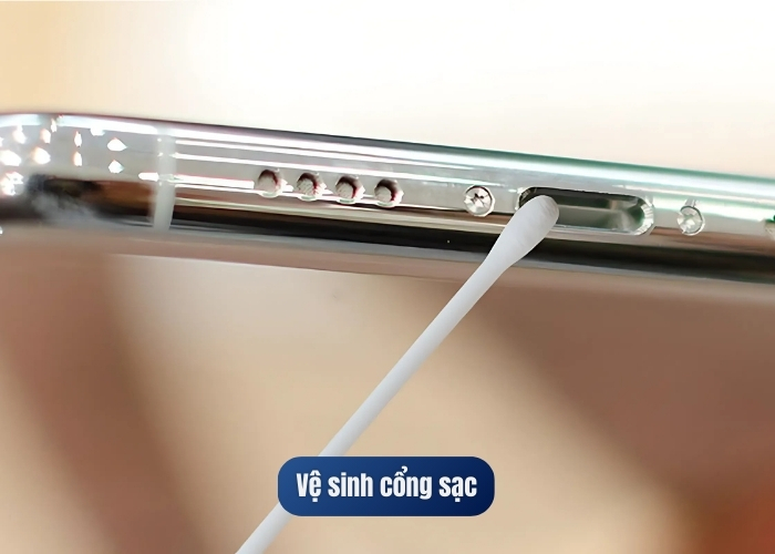 Vệ sinh cổng sạc giúp khắc phục tình trạng màn hình iPhone bị đốm đen