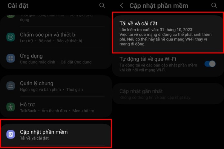 Bước 2: Nhấn vào “Tải về” để cài đặt hệ điều hành mới. Thiết bị sẽ tự động kiểm tra phiên bản Android hiện tại sau đó sẽ thông báo để cập nhật mới.