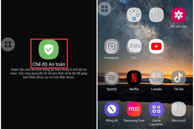 Bước 3: Khi máy đã bật lên ở "Chế độ an toàn", bạn có thể kiểm tra xem màn hình còn bị xanh không. Nếu không, lỗi có thể do ứng dụng bên thứ ba.