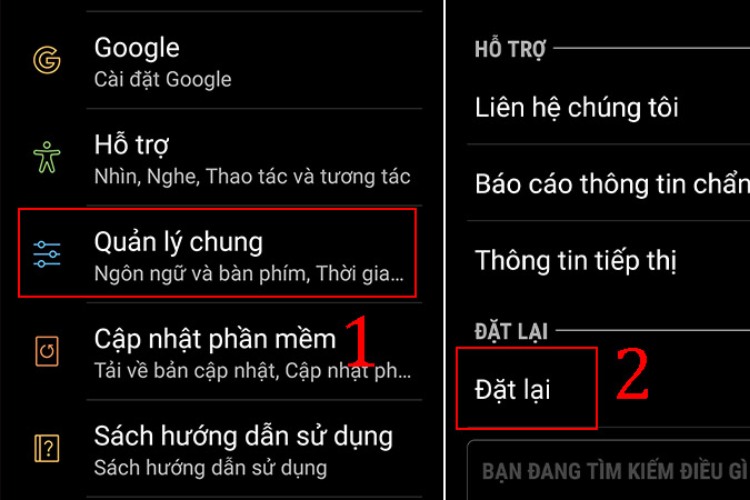 Bước 1: Mở “Cài đặt” trên điện thoại của bạn. Tiếp theo, chọn “Quản lý chung” sau đó chọn “Đặt lại”.