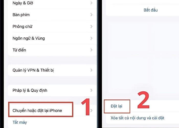 Bước 2: Chọn mục “Chuyển hoặc đặt lại iPhone” rồi chọn “Đặt lại”.