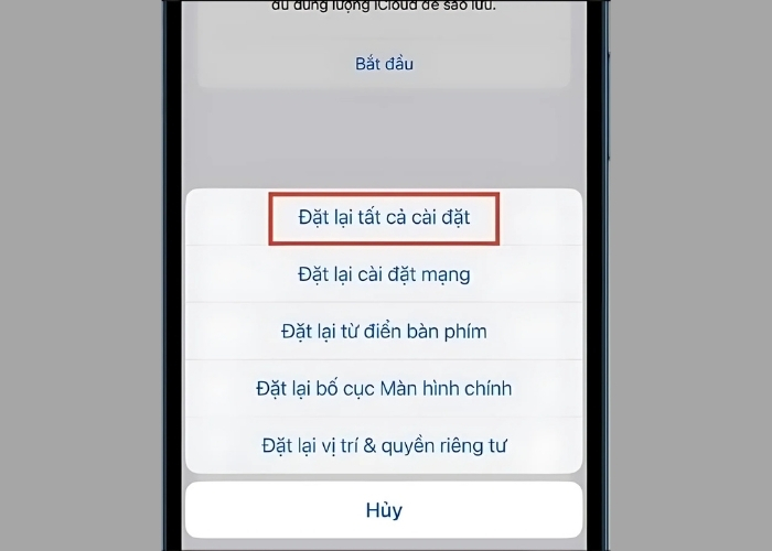 Bước 3-1: Chọn “Đặt lại tất cả cài đặt” sẽ giúp iPhone của bạn xoá toàn bộ thiết lập cài đặt trên thiết bị của bạn nhưng sẽ không bị mất dữ liệu bên trong máy.
