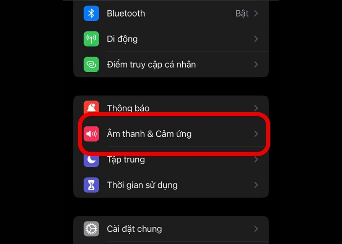 Bước 1: Vào ứng dụng “Cài đặt” rồi chọn mục “Âm thanh & Cảm ứng”.