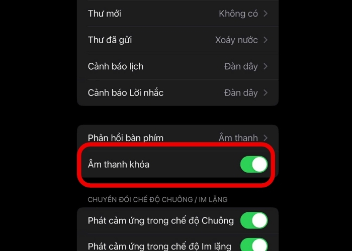 Bước 2: Kéo xuống phía dưới để thấy mục “Âm thanh khoá” rồi gạt qua để bật chế độ này là hoàn thành.