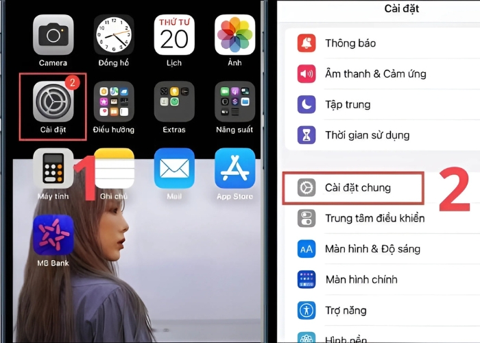 Bước 1: Ở màn hình chính iPhone, hãy vào ứng dụng “Cài Đặt” và chọn tiếp “Cài đặt chung”.