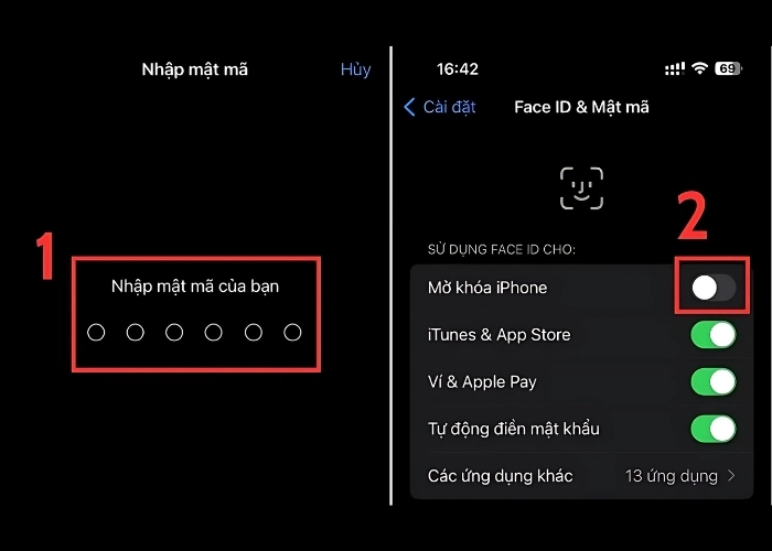 Bước 2: Nhập mật khẩu mở khoá điện thoại rồi tắt chức năng “Mở khoá iPhone”.