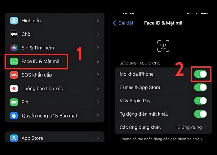 Bước 4: Truy cập lại mục “Face ID & Mật mã” rồi kích hoạt lại “Mở khoá iPhone”.
