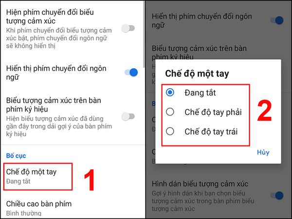 - Chọn Gboard > Chọn Tùy chọn > Chọn "Chế độ một tay" và lựa chọn chế độ mong muốn.