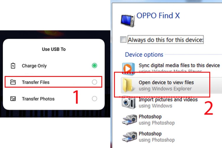 Kết nối điện thoại với máy tính tiếp tục sao chép file vừa tải
