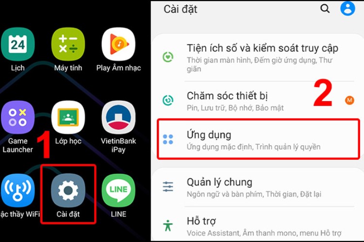 Vào “Cài đặt” sau đó chọn “Ứng dụng”