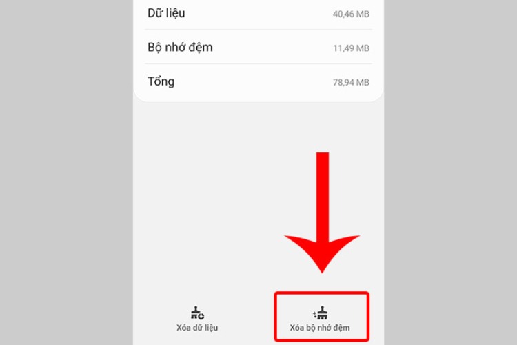 Bước 3: Nhấn vào “Xóa bộ nhớ cache” hoặc “Xóa dữ liệu” để xóa các dữ liệu không cần thiết.