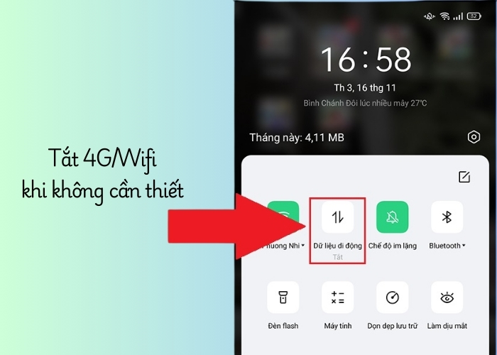 Với nguyên nhân này, bạn hoàn toàn có thể tự khắc phục và thực chất, cách thực hiện rất đơn giản. Trong quá trình sử dụng điện thoại, điều chỉnh hoặc tắt 4G/Wifi khi không cần thiết. Sau một khoảng thời gian điện thoại hoạt động liên tục, cần để máy nghỉ ngơi, tránh tình trạng quá tải dẫn đến nóng máy.