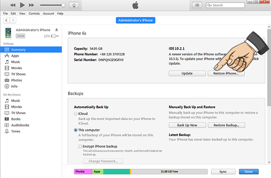 Nếu thiết bị của bạn bị lag, đơ và không thể hoạt động, chỉ có một cách nếu iPhone không tắt nguồn được thì hãy restore về trạng thái như mới.