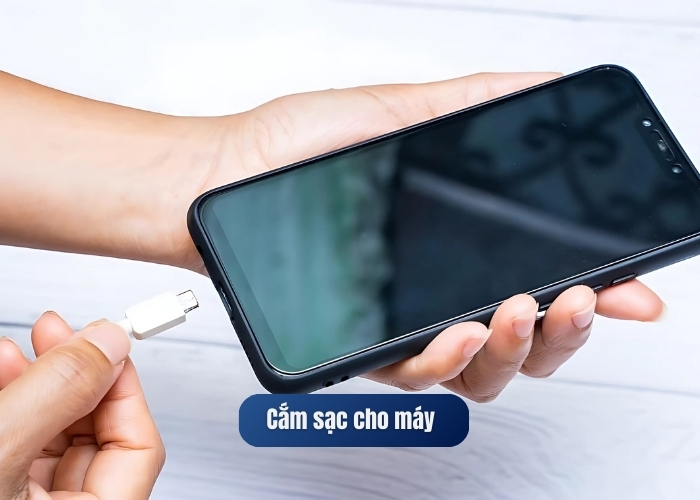 Cắm sạc cho máy để điện thoại có thể lên nguồn