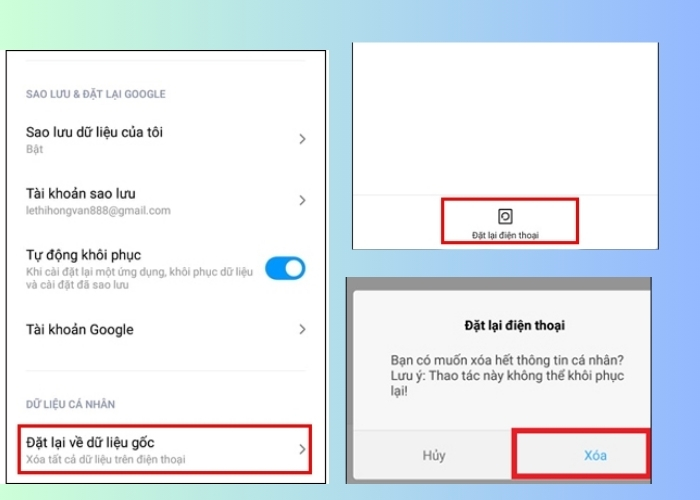 Bước 3: Đặt lại về dữ liệu gốc → Đặt lại điện thoại, cuối cùng chọn Xóa.