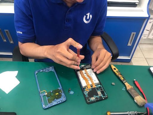Kiểm tra phần cứng: Mở máy và đánh giá các linh kiện như bo mạch, màn hình và pin để xác định nguyên nhân hư hỏng.