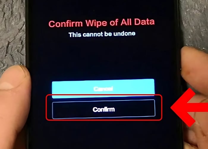 Bước 3: Chọn “Wipe All Data” rồi chọn “Confirm”.