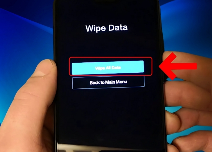 Bước 3: Tiếp tục chọn “Wipe All Data”, sau đó nhấn “Confirm” để xác nhận thao tác.