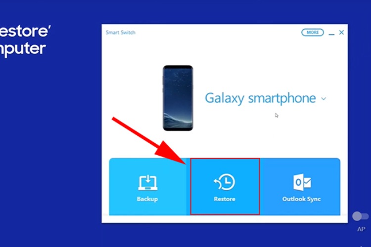 Mở Smart Switch trên máy tính sau đó chọn mục “Restore”