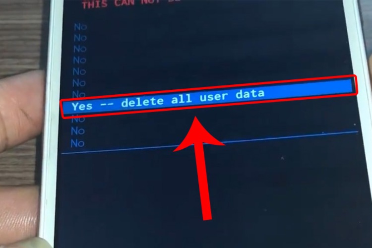 Dùng phím “Giảm âm lượng” để chọn “Yes – Delete all data user"