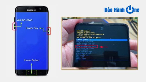 Giữ tổ hợp phím Nguồn + Home + Volume Down cho đến khi máy vào chế độ Recovery.