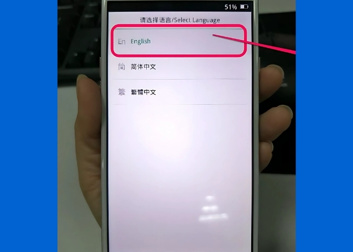 Bước 2: Chọn ngôn ngữ “English” để thực hiện cho thao tác tiếp theo.