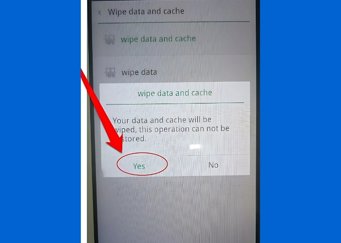 Bước 3: Nếu tuỳ chọn “Wipe data and cache” xuất hiện, hãy nhấn “Yes” để xoá dữ liệu.