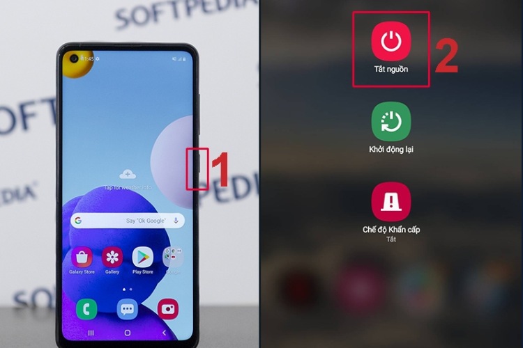 Bước 1: Nhấn và giữ nút “Nguồn” cho đến khi xuất hiện 3 tùy chọn trên màn hình.